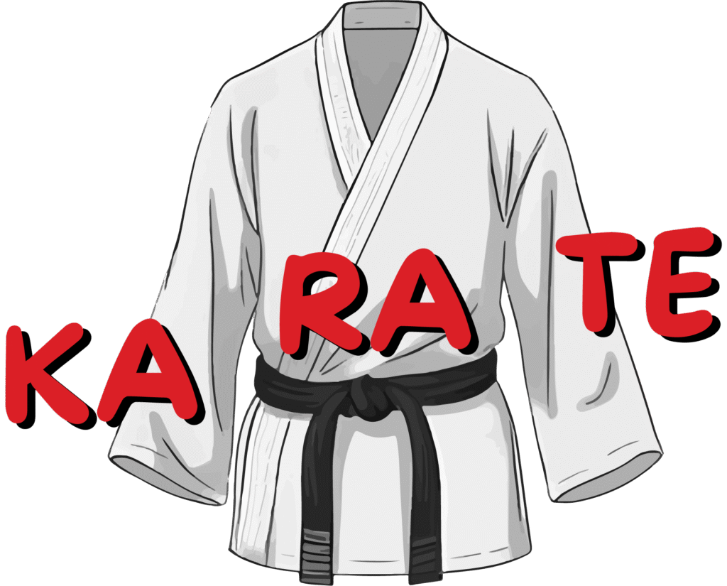 Karatega. Białe kimono do karate, składające się z luźnej bluzy z rękawami ¾ oraz spodni o nogawkach również ¾. Strój jest taki sam na każdym poziomie zaawansowania – o stopniu ucznia lub mistrza informuje jedynie kolor pasa.